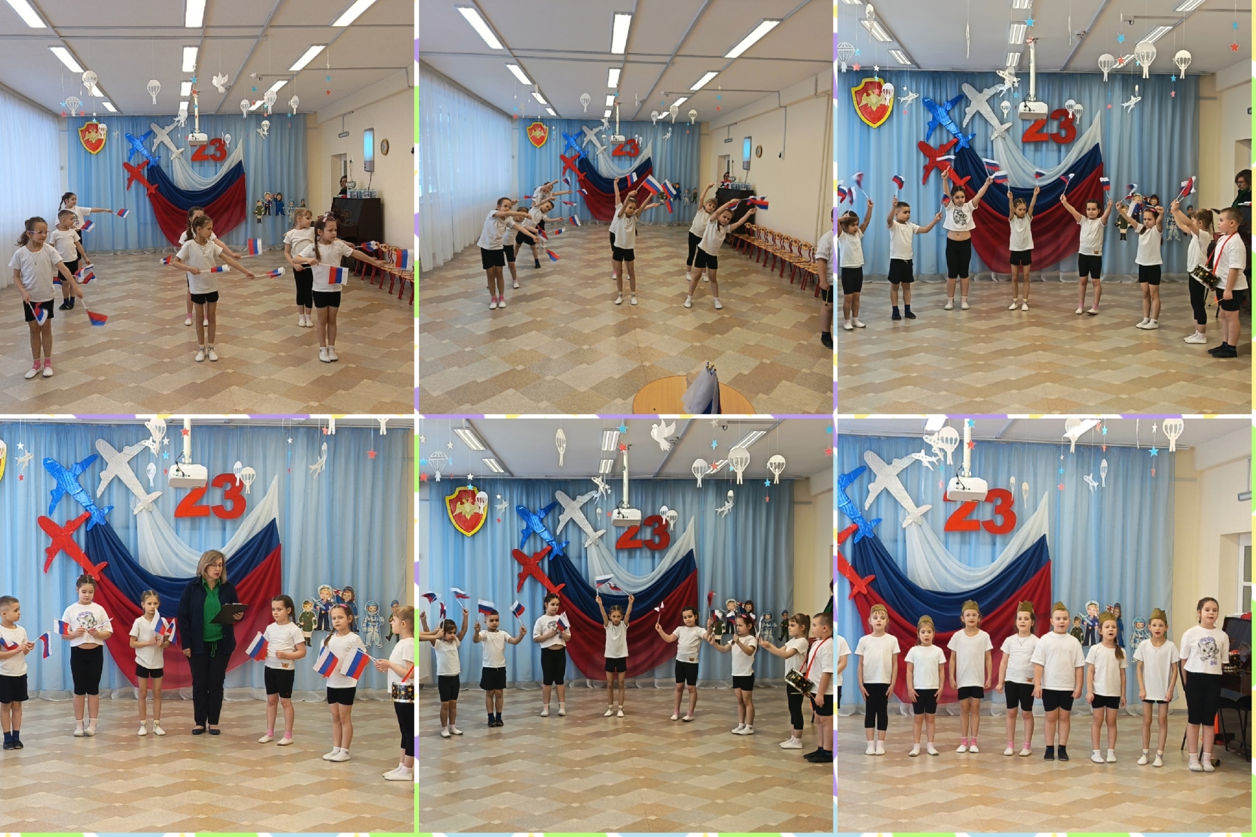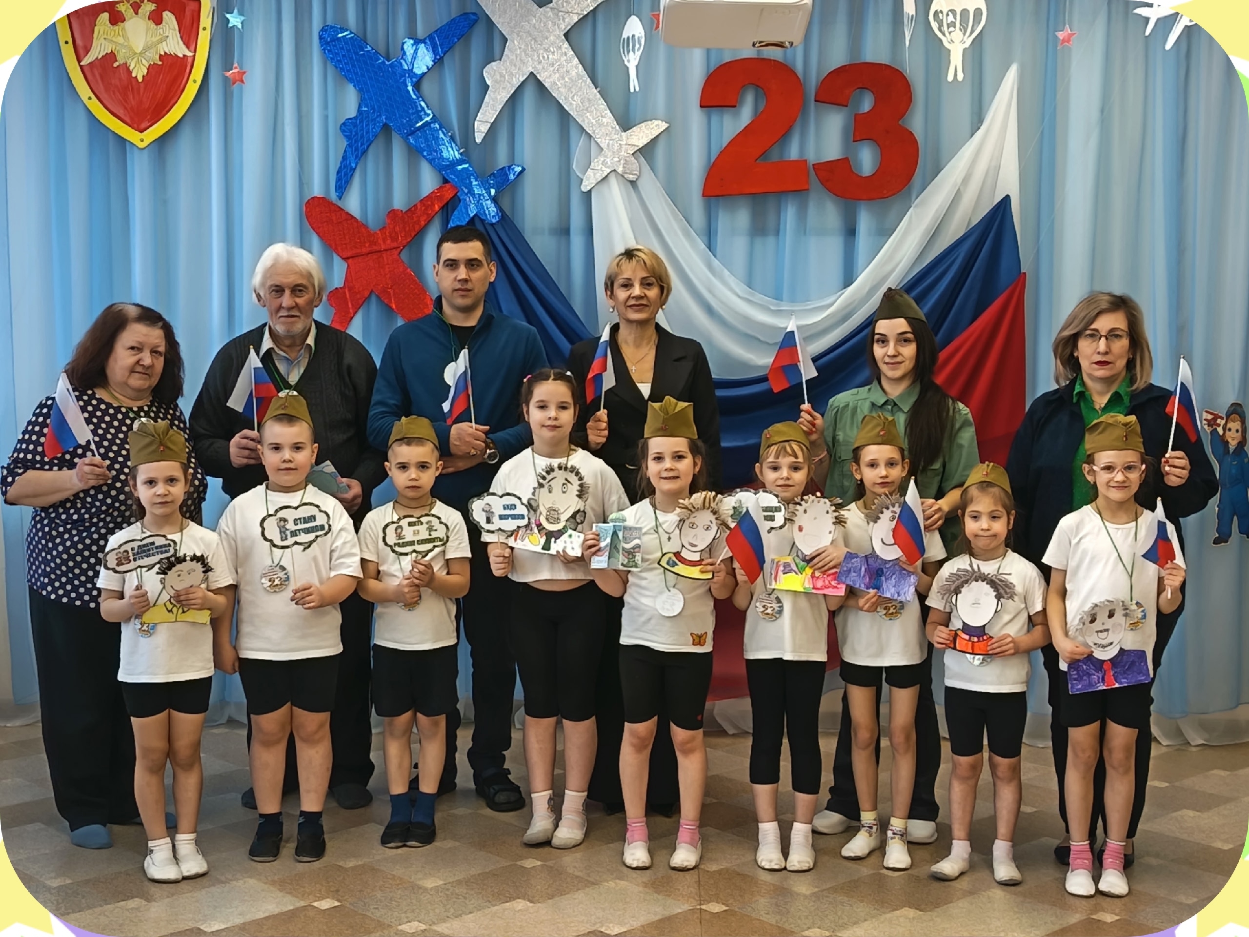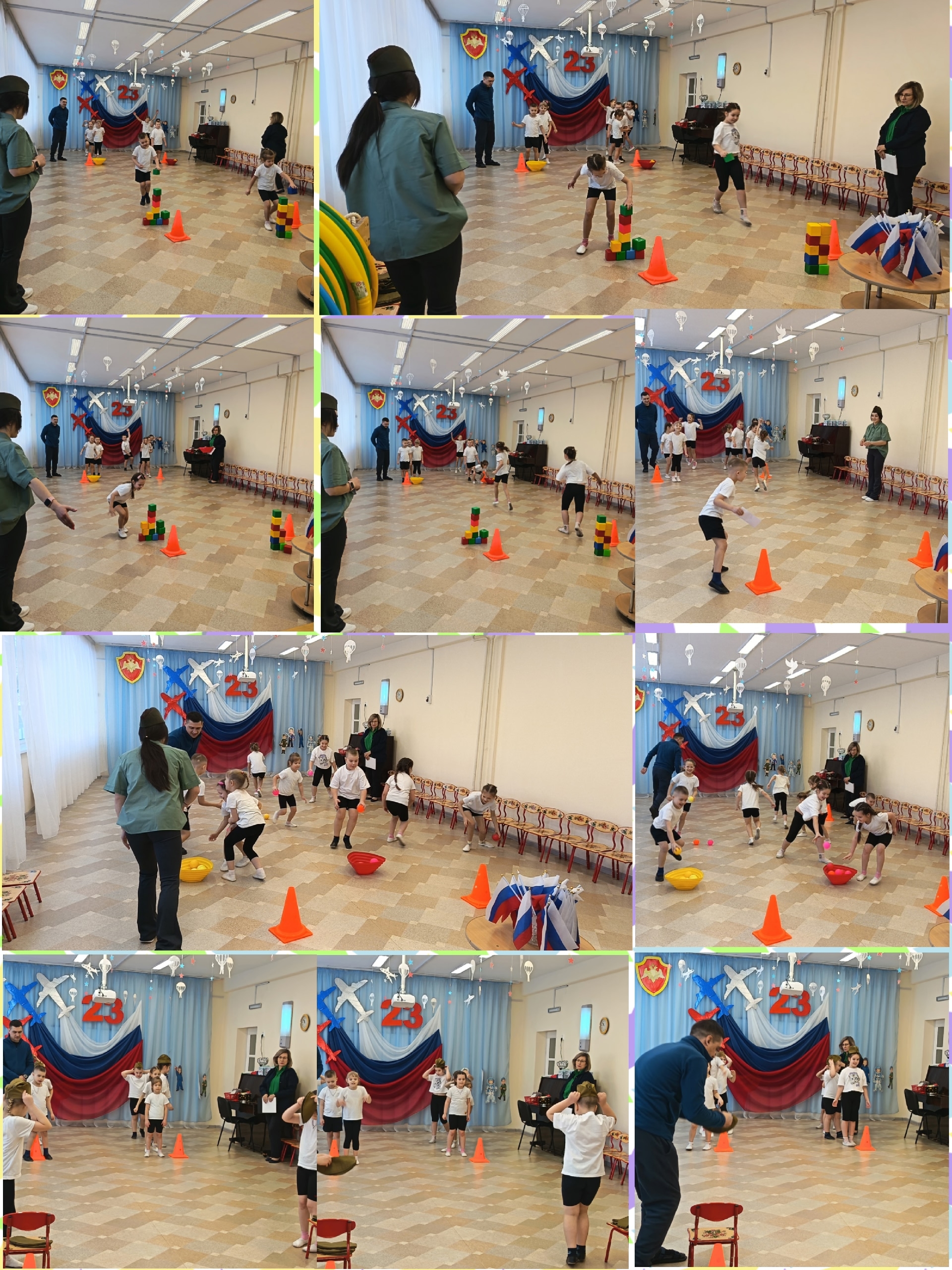 Ребята поздравили своих пап и дедушек исполнили для них патриотическую песню, танец, стихотворения и с большим успехом справились с полосой препятствий, которая ожидала их на нашем празднике.