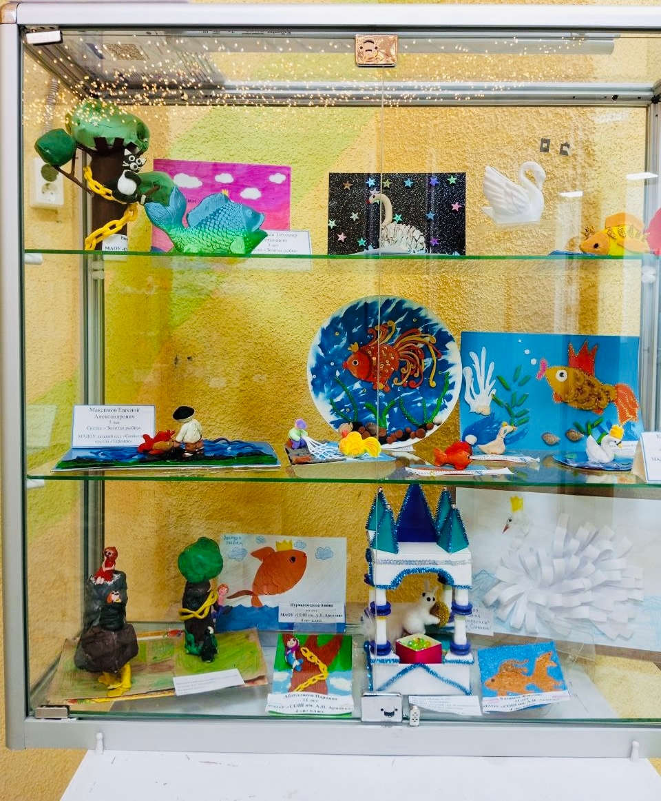 Ребята создали поделки на всеми любимые сказки "О золотой рыбке и рыбке", "О царе Салтане", отрывок к поэме "Русла и Людмила" ("У лукоморья дуб зеленый....")