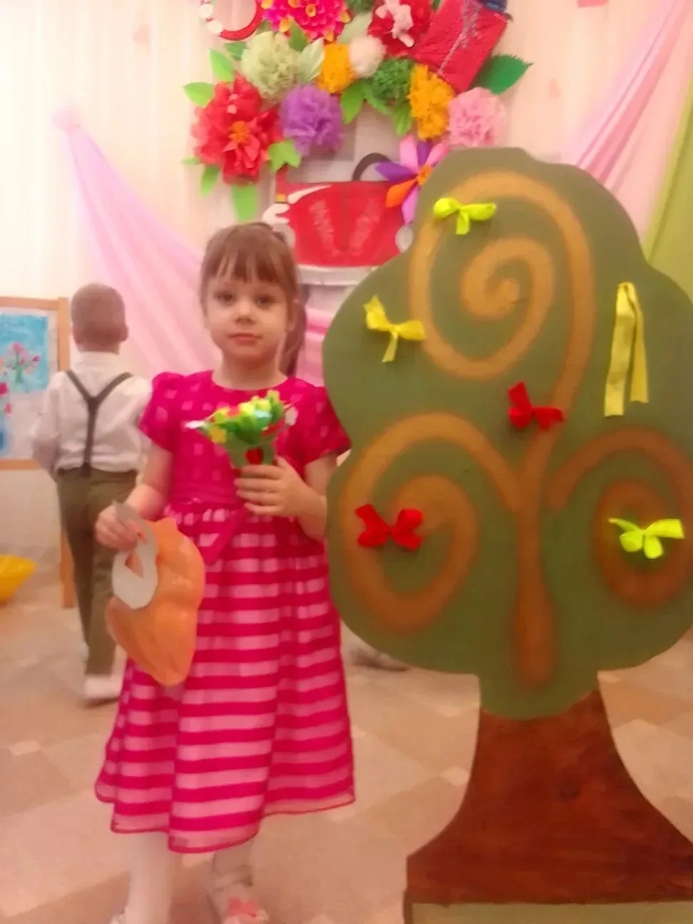 Дети посадили семечко, из которого выросло "волшебное конфетное дерево". В каждой конфете был сюрприз для самых дорогих и прекрасных мам, бабушек и девочек. Ребята читали стихи, исполняли песни, танцевали и играли вместе с любимыми мамами.
