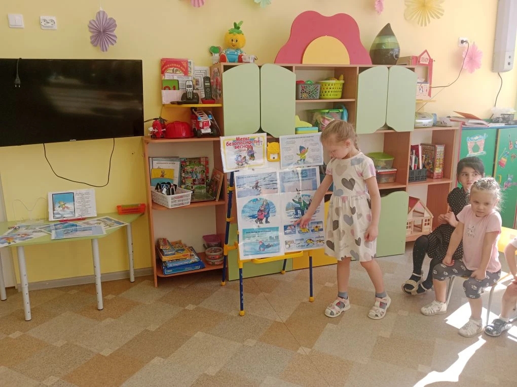 В старшей группе "Чиоллино" педагоги провели с детьми беседу на тему "Правила поведения на водоёмах в весенний период", посмотрели и обсудили мультфильмы по теме "Безопасность в весенний период на льду", рассматривали и обсуждали иллюстрации на тему.